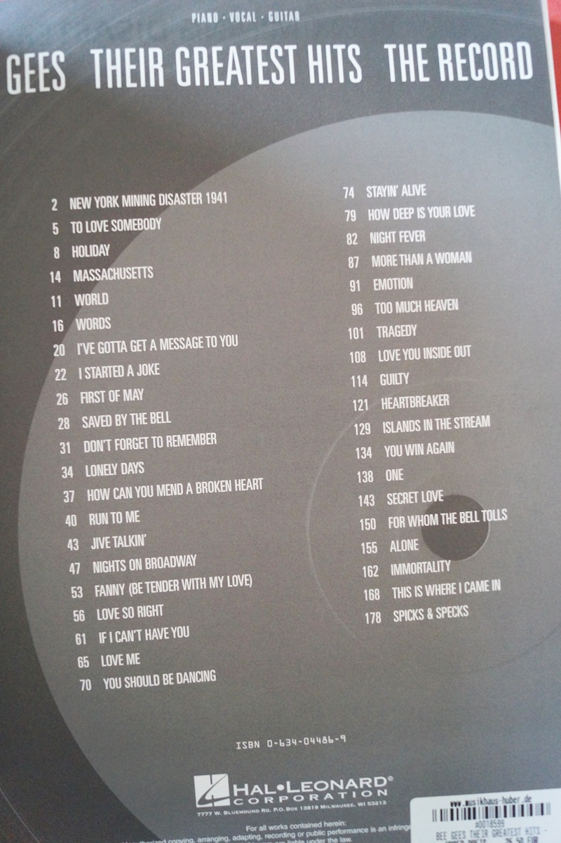 Bee Gees - Their Greatest Hits The Record Songbook Notenbuch Piano Vocal Guitar PVG