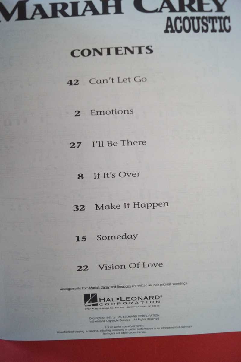 Mariah Carey - Acoustic Songbook Notenbuch Piano Vocal Guitar PVG