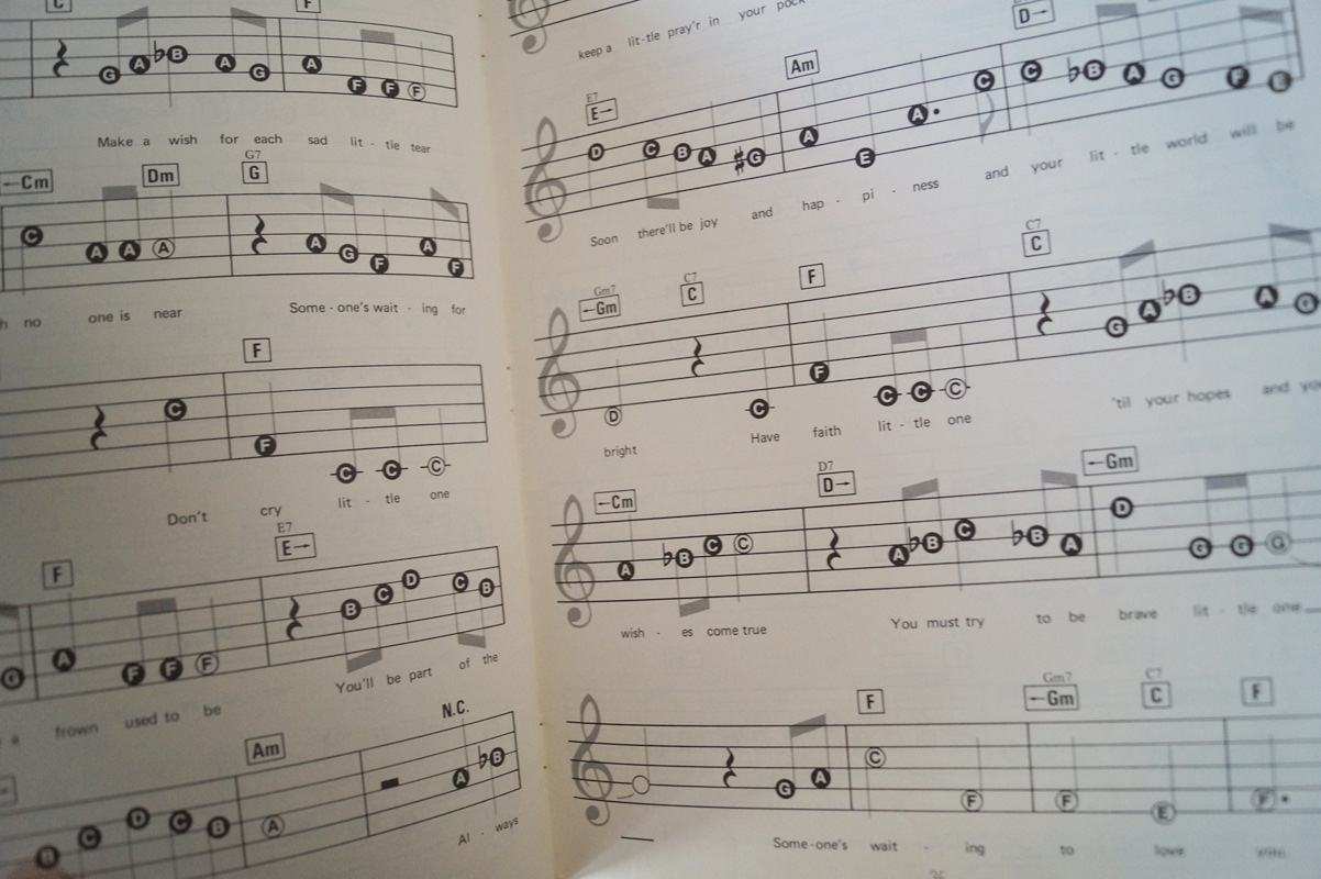 Schauen Sie sich auch bitte die weiteren Fotos an, diese enthalten die Aufstellung der Titel dieses Heftes/Buches sowie eine Beispielseite der Notation.