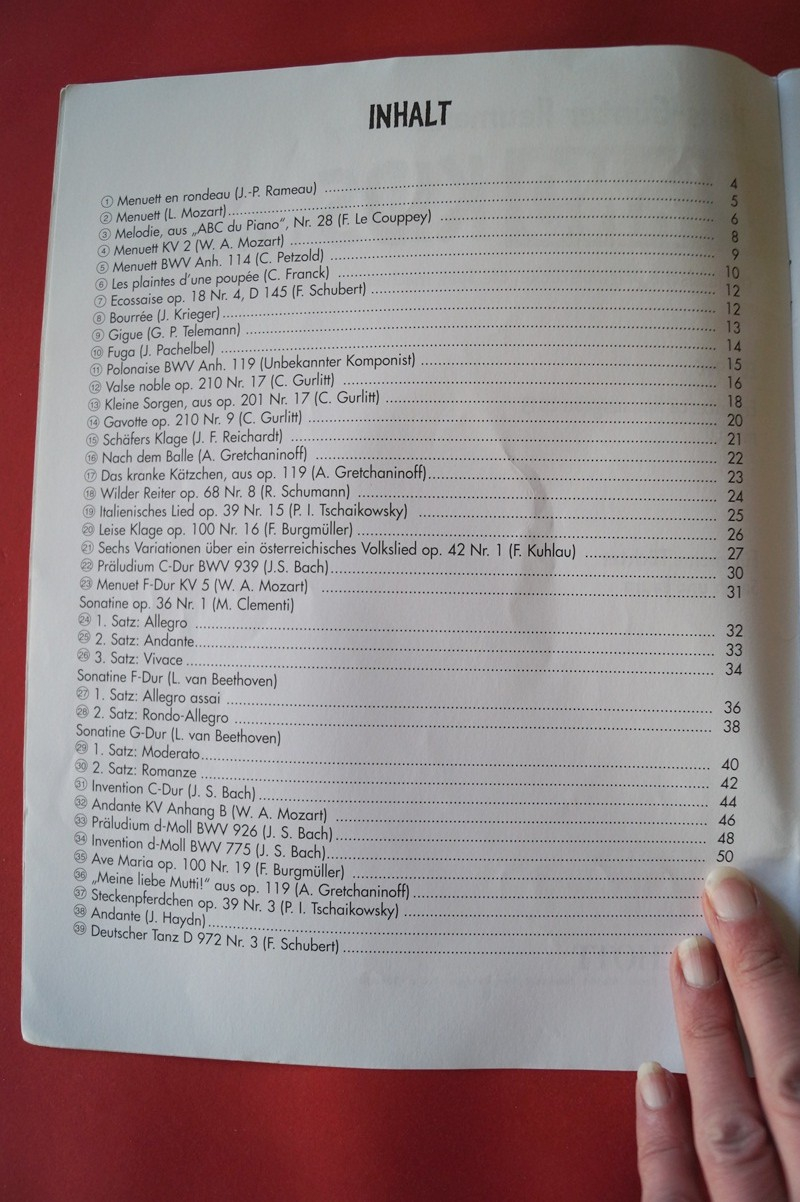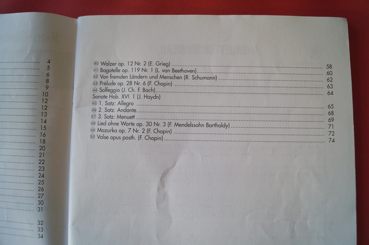 Schauen Sie sich auch bitte die weiteren Fotos an, diese enthalten die Aufstellung der Titel dieses Buches sowie eine Beispielseite der Notation.