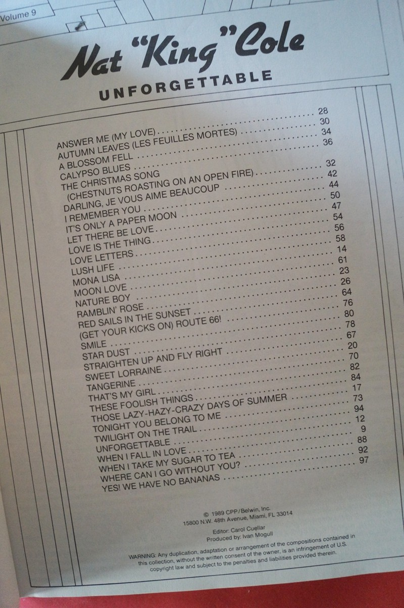 Nat King Cole - Unforgettable Songbook Notenbuch Piano Vocal Guitar PVG