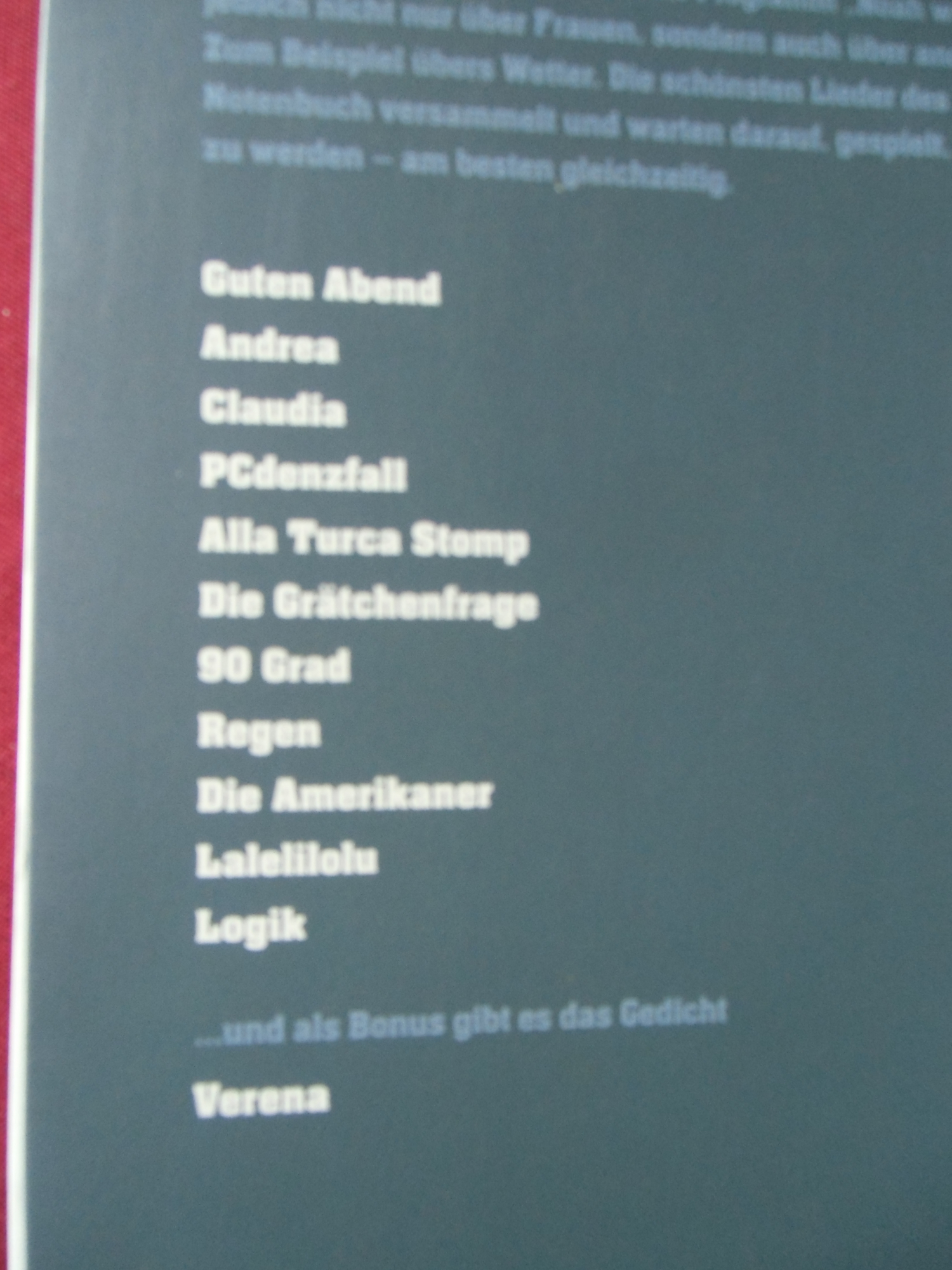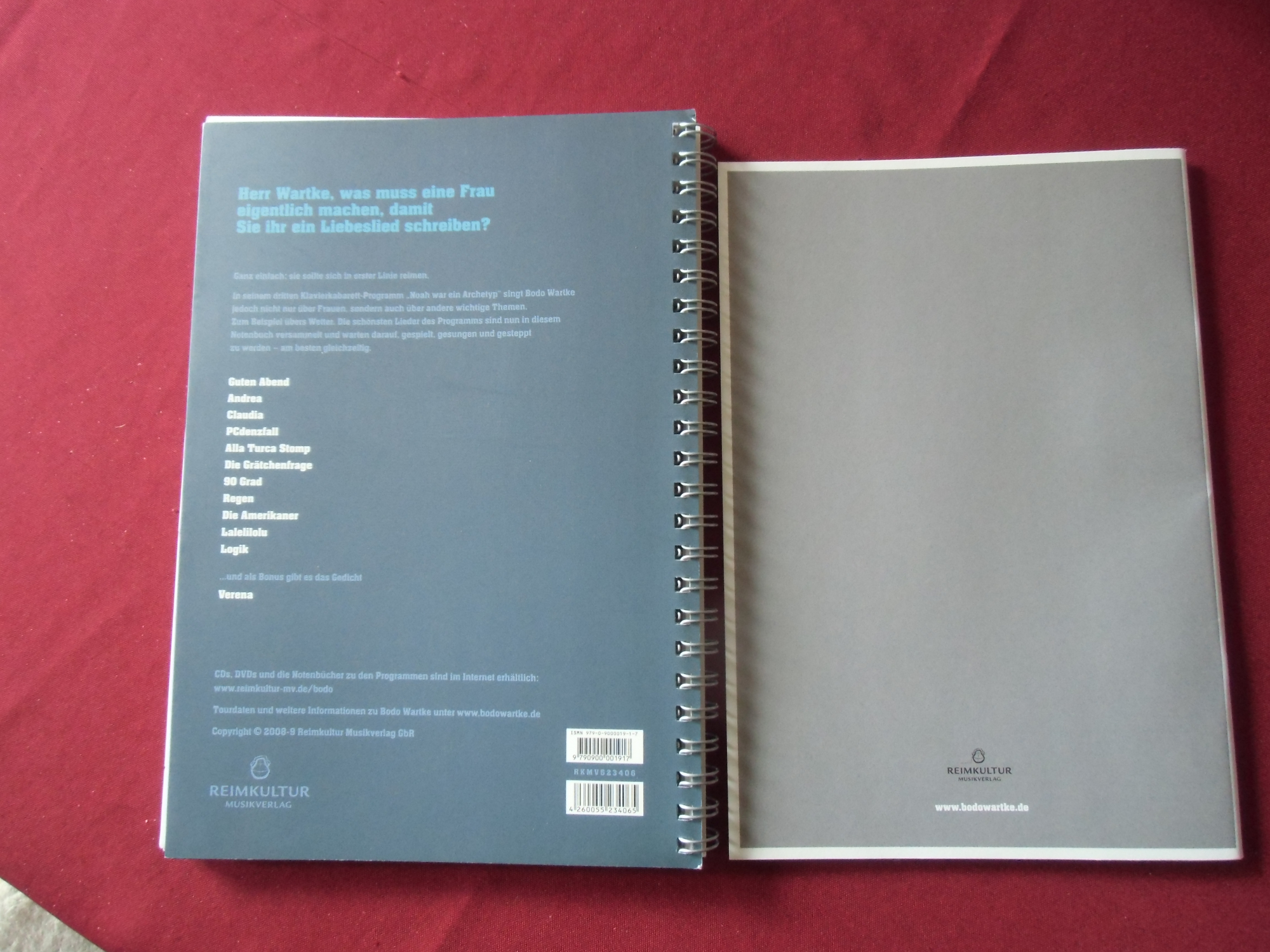 Schauen Sie sich auch bitte die weiteren Fotos an, diese enthalten die Aufstellung der Titel dieses Buches sowie eine Beispielseite der Notation.